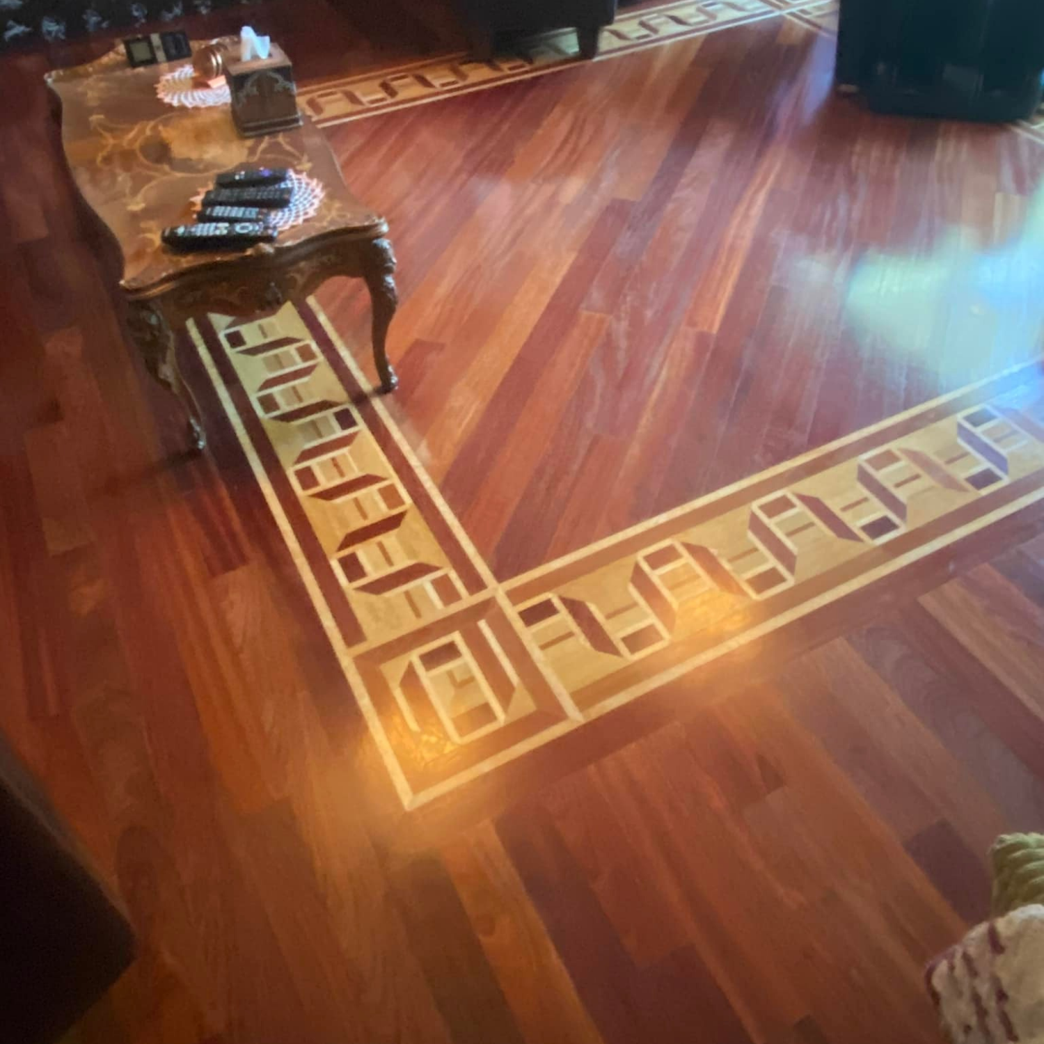 Unique designs created for clients.Some of the various work done inside residential properties. From quick installations to more detailed work that involves repairing, sanding, refinishing, and inlaying new hardwood,